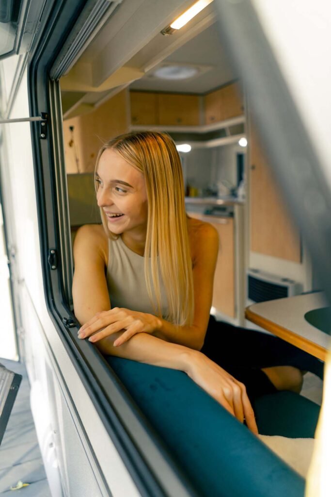 Nuestros modelos ofrecen cama, espacio de cocina, fregadero con agua corriente, mesa extraíble y cajas de almacenaje que también sirven como taburetes.